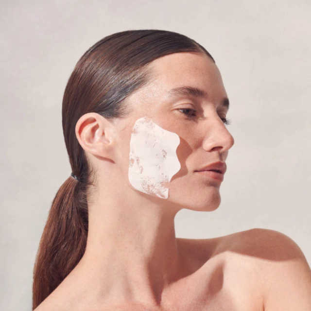 3. Coloque el film de colágeno sobre el rostro en el lugar deseado, dejando visible la nprotección rosa.